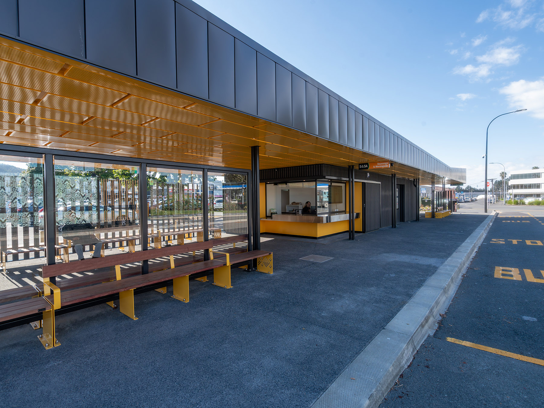 The project included demolishing the existing buildings and constructing modern facilities - public toilets, staff amenities, a ticketing office, and a covered seating area. A new pedestrian link between Rose and Vine Street now provides a safer and more direct connection to the city centre. These upgrades create a better experience for passengers and support increased use of public transport in Whangārei.